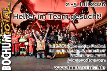 Mit ihrer Offenheit gegenüber musikalischen Experimenten haben die Veranstalter in den letzten Jahren ein sehr gutes Näschen für die kommenden Stars bewiesen. Egal ob Joris, Casper, Wir sind Helden, die Donots, Silbermond oder Seeed. Sie alle erhielten auf dem Weg zu nationaler Berühmtheit hier ihre Feuertaufe. Kein Wunder, dass der talentierte Nachwuchs sich in Scharen um einen der Bühnenplätze bewirbt. Mit einem perfekten Förderkonzept suchen sich die Veranstalter gemeinsam mit dem Kulturbüro der Stadt Bochum die Rosinen aus der Masse der Bands heraus. Mit Erfolg, bei Bochum Total stimmt die Qualität und damit auch die Stimmung. Bis zu 1.000.000 Besucher feierten mittlerweile jedes Jahr vier Tage lang ausgelassen in der Bochumer Innenstadt.Vielleicht bist Du ja bald einer davon - es lohnt sich! Der Eintritt ist übrigens frei.